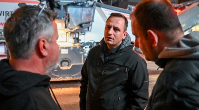 Gece yapılan asfalt çalışmalarını Bornova Belediye Başkanı Ömer Eşki, ilgili birim sorumlularıyla birlikte yerinde inceleyerek ekiplerden bilgi aldı.