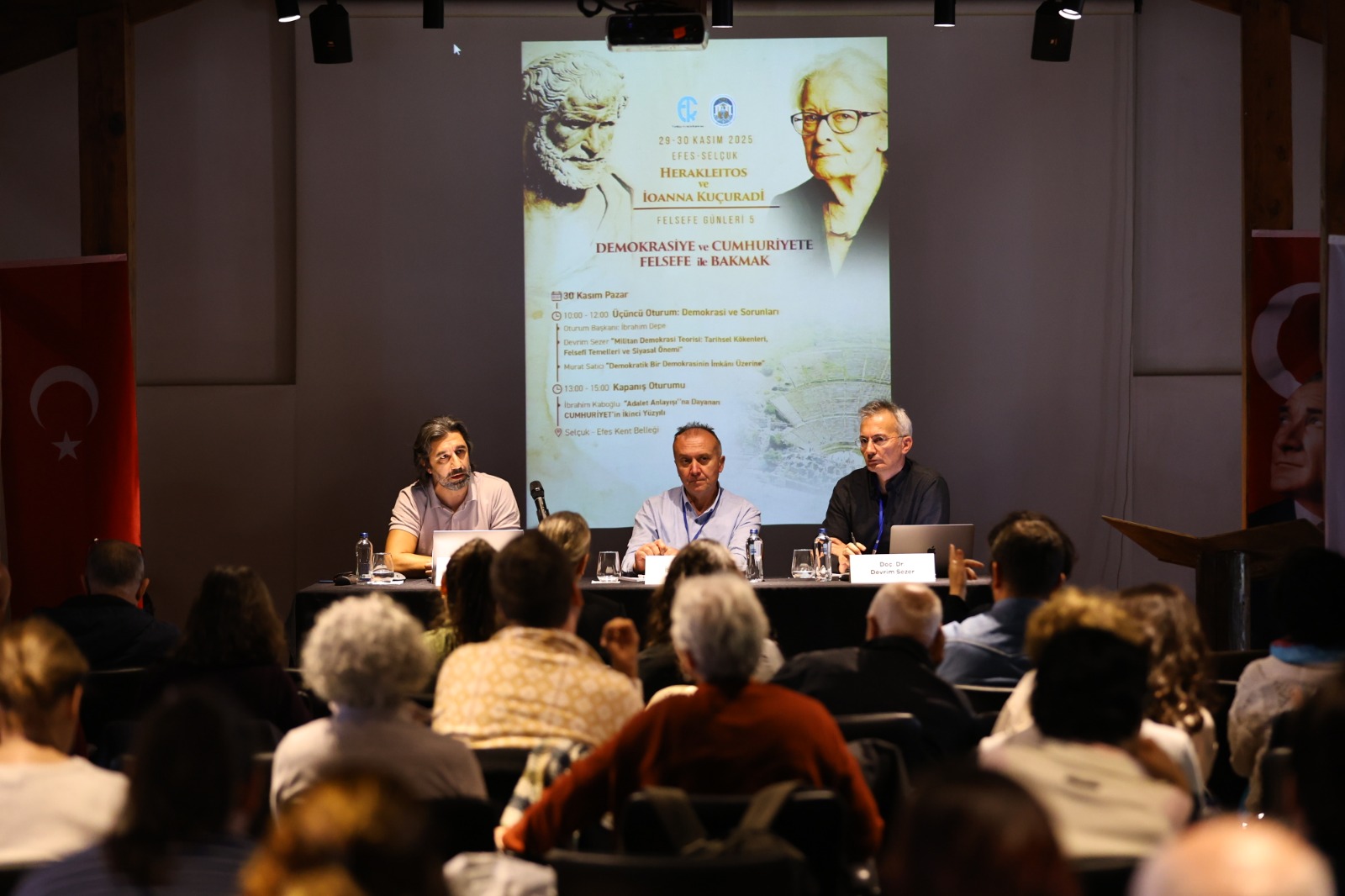 Efes Selçuk Belediyesi ve Türkiye Felsefe Kurumu iş birliği ile düzenlenen Herakleitos ve İoanna Kuçuradi Felsefe Günlerinin ikinci gününde, demokrasi ve adalet kavramları felsefi açıdan ele alındı.