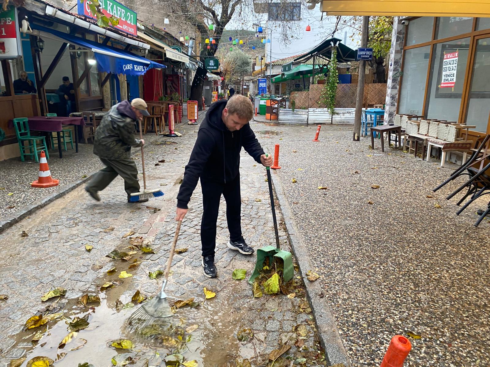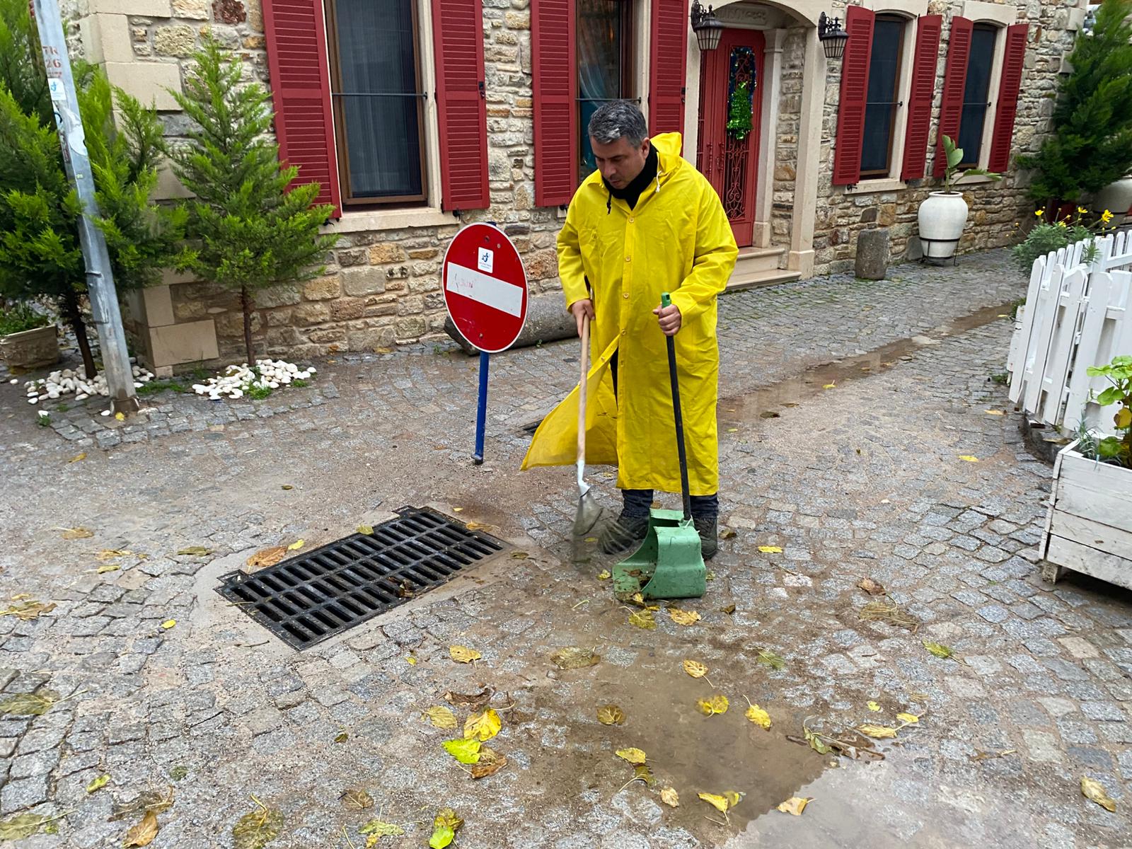 Şiddetli yağışla birlikte rüzgârın sürüklediği yaprakların yağmur suyu kanallarını tıkamaması için ekipler yoğun mesai harcıyor. Özellikle çarşı merkezi ve ara sokaklarda tıkanan mazgallara anında müdahale edilerek biriken suların tahliyesi sağlanıyor. Ekipler, süpürge araçları ve el yordamıyla ızgaraların üzerini temizleyerek suyun akışını normale döndürüyor.
