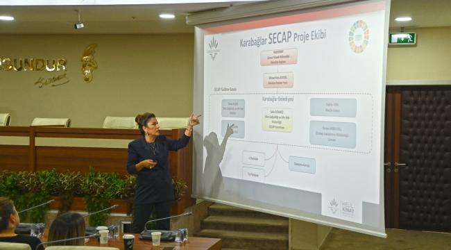 Bu kapsamda, Belediye Meclis Üyesi ve Çevre Mühendisi Rahile Yeni’nin sunumuyla Meclis Toplantı Salonu’nda bir iç paydaş toplantısı düzenlendi. Toplantıya Belediye Başkanı Helil Kınay, başkan yardımcıları, birim müdürleri ve SECAP veri sorumluları katıldı.