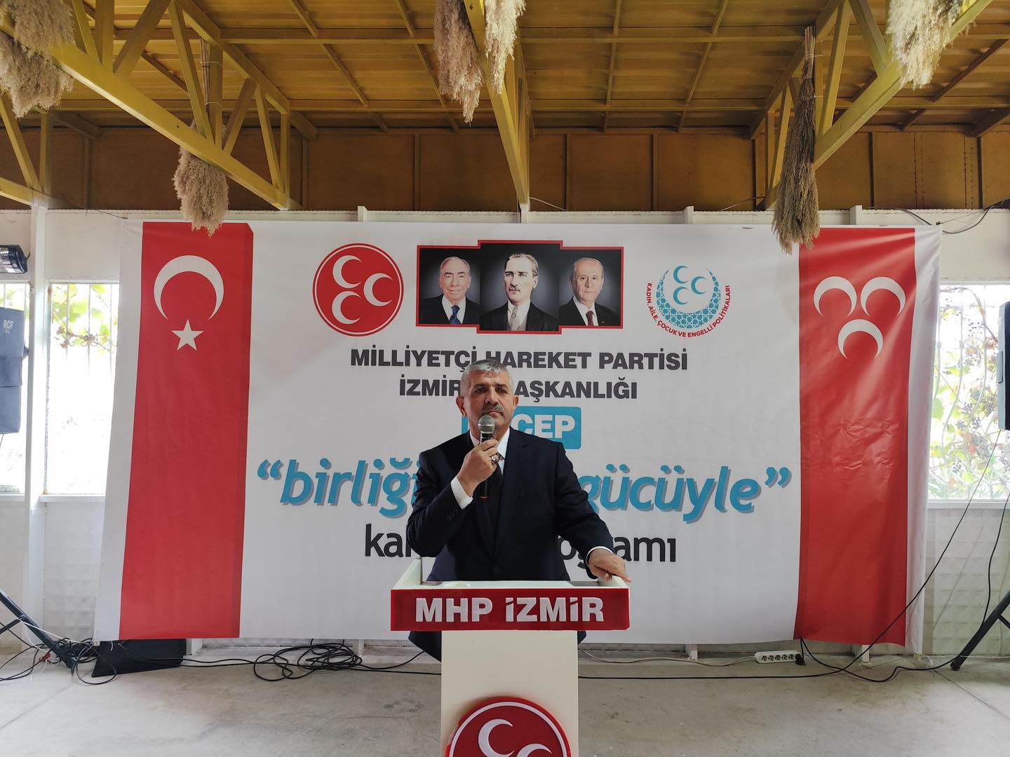 Eskiden beri insana dokunmayı, vicdani değerlerle insana temas etmeyi çok önemsediğini de sözlerine ekleyen MHP İzmir İl Başkanı Veysel Şahin, “Bizler insanımızdan uzak duran, salon siyasetçileri değiliz. Her zemin ve şartta insanımızla birlikteyiz. Siyasetimizin ana merkezini de bu yaklaşımımız oluşturmaktadır. Milliyetçilik, halka dayanır, insandan hareket alır. Dinimiz de milli varlığımız da bizi insanımıza ve halkıma yöneltir. İnsanımıza temas, insanımıza dokunmak bu yüzden bizim için çok önemlidir. Toplumsal dayanışma, paylaşma, bir ve bütün olmamızın en önemli özelliğidir.” Dedi.