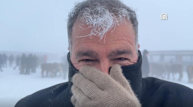 Erken saatlerde hayvan borsasına giden vatandaşların kaş ve saçlarında kırağı oluştu.